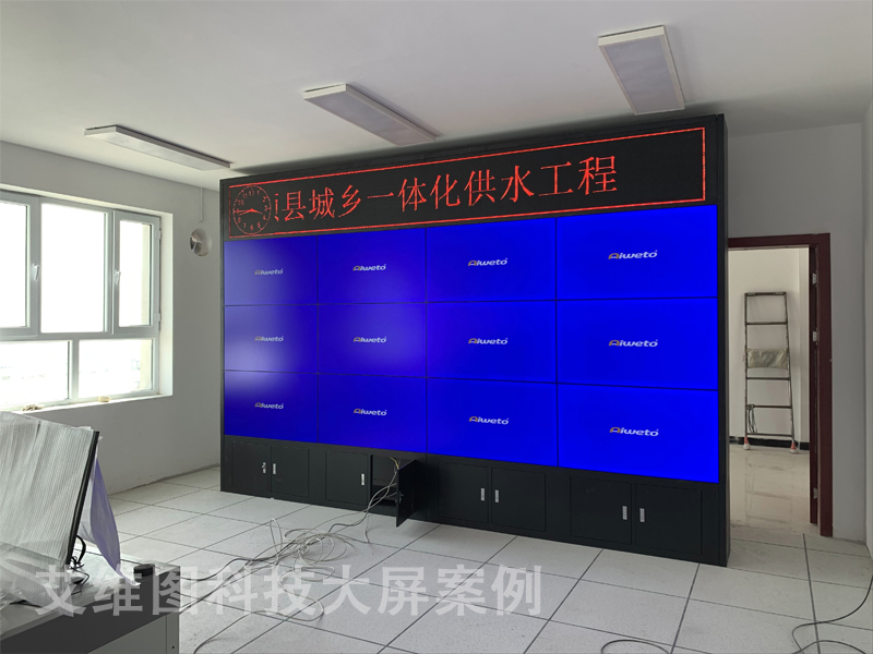 近年來(lái),國(guó)家出臺(tái)多項(xiàng)政策文件,針對(duì)農(nóng)村供水存在的突出矛盾,提出了農(nóng)村飲水安全鞏固提升、城鄉(xiāng)一體化供水的工作任務(wù),確定了提高農(nóng)村自來(lái)水普及率和水質(zhì)達(dá)標(biāo)率,使城鄉(xiāng)居民共享安全、優(yōu)質(zhì)供水的工作目標(biāo)。這次艾維圖生產(chǎn)的49寸液晶拼接屏、P3.75LED顯示屏、多功能解碼矩陣一體機(jī)產(chǎn)品的應(yīng)用,充分的說(shuō)明了城鄉(xiāng)一體化供水工程正在逐步走向集體化、數(shù)據(jù)化、系統(tǒng)化,通過(guò)液晶拼接墻展示出現(xiàn)代化供水項(xiàng)目的發(fā)展,讓人不禁感到驚訝。下面讓我們來(lái)看一下艾維圖12臺(tái)49寸液晶拼接屏的效果圖吧。