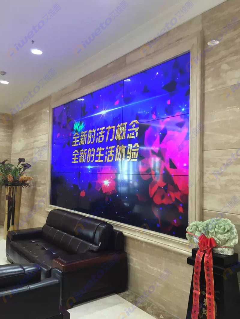 通過對客戶使用需求和部署環境的認真研究和考察,Aiweto(艾維圖)科技工程師給出了多套相關解決方案,最終選用了由9臺(Aiweto) 553.5mm液晶拼接單元組成的3×3大屏幕液晶拼接墻。(Aiweto) 553.5mm液晶拼接單元是艾維圖科技推出的一款超窄邊液晶拼接顯示器,采用工業級面板,采用先進的集成處理芯片,性能穩定,運動圖像補償等獨有的先進技術,有效的保證了輸出圖像的效果,支持7×24小時開機,拼接邊縫小,適合大屏液晶拼接項目應用。