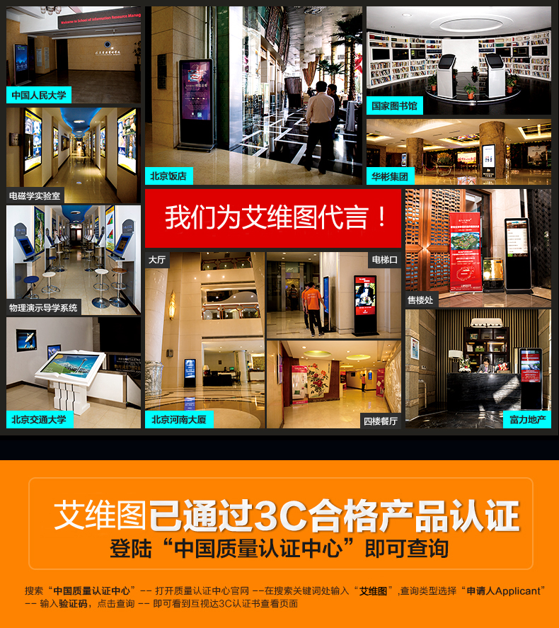 (AW-CM650L01)立式觸摸一體機是深圳市艾維圖科技有限公司自主研發的大尺寸系列觸控產品的一種機型。(AW-CM650L01)能夠輕松實現各種信息查詢功能,如地理位置查詢、用戶信息查詢、相關法規和操作流程查詢等等,已被廣泛應用于政府機關、通信、電力、工商、稅務、社保、醫保、公檢法、金融、醫院、機場、車站、學校、旅游景區、圖書館、博物館、科技館、餐飲、賓館、商場等諸多行業,并取得了客戶的廣泛好評。
