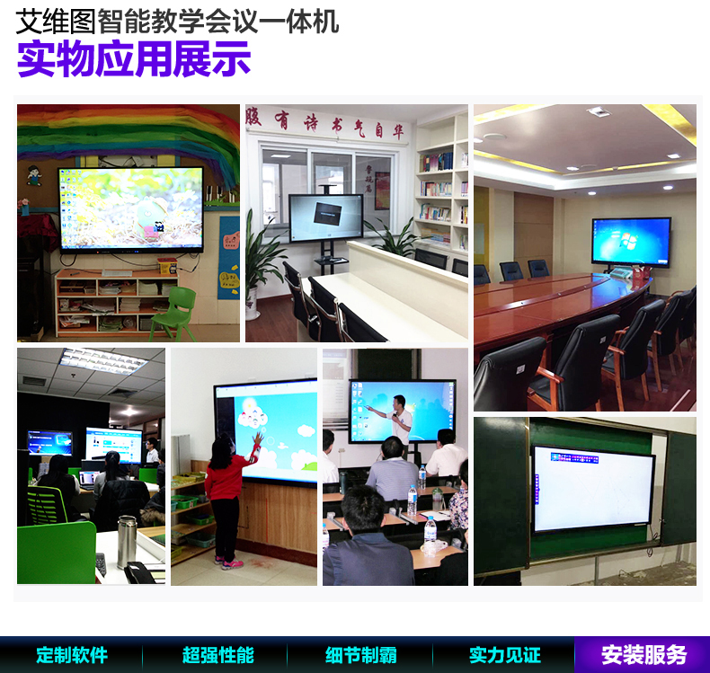 AW系列-多媒體教學一體機,高清大屏顯示,壁掛支架多種使用方式,人性化機型設計,立式與掛式兩種使用方法可交替使用,避免使用環境發生變化時產生的資源浪費問題采用LED背光源長壽命,低功耗,環保節能。智能電子白板,各種文件一鍵加載,多點觸控智能電子白板適用于各種商務會議,支持手寫批注,兼容日常office辦公軟件,本地、U盤、網盤、局域網數據輕松駕馭。書寫流暢,減少視覺誤差,高端企業必備,多重主題背景,筆形色彩,任意選擇。高端配置 讓運行速度,完美兼容WIN7,WIN8 隨意切換。